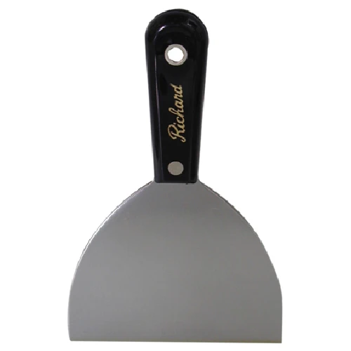 Use a Richard taping knife to tap and patch drywall joints. Made of polypropylene, the handle offers chemical resistance against a wide range of acids and bases. With a carbon steel blade, this 5-inch taping knife is durable.